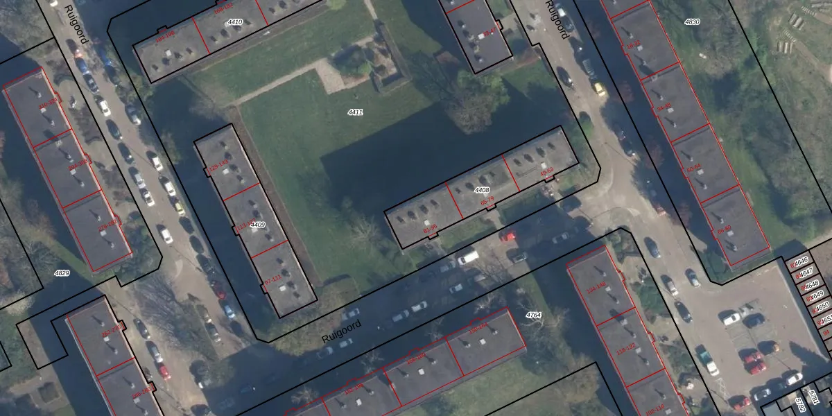 Het perceel waarop Ruigoord 95 staat heeft een oppervlakte van 483 m². Dit is een groot perceel. De perceeloppervlakte wordt geregistreerd door het Kadaster. Gedetailleerde informatie over de maten van dit perceel kunt u vinden in het rapport Kadastrale kaart met maatvoering van Ruigoord 95.