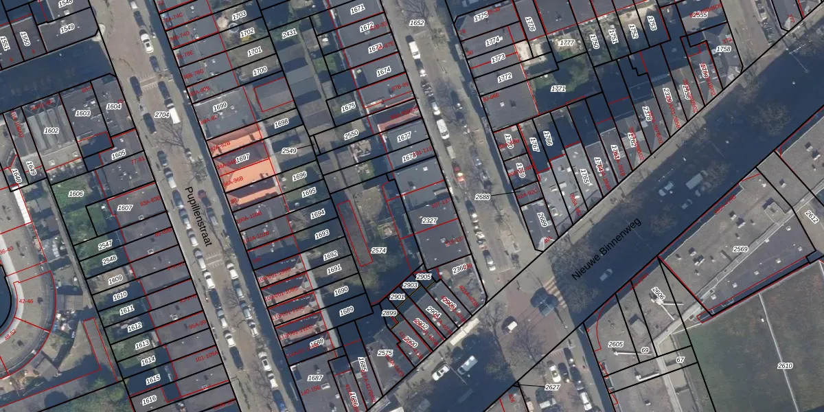Het perceel waarop het adres ligt is DHV00-F-2327. De afkorting 'DHV00' staat voor kadastrale gemeente Delfshaven. Het perceel is 283 m² groot. Dat is kleiner dan de gemiddelde perceeloppervlakte in Delfshaven, dat op 628,89 m² ligt. De grootste perceeloppervlakte in de kadastrale gemeente is 22,2 ha. De kleinste oppervlakte bedraagt 0 m². Er zijn 18 adressen aanwezig op het perceel. De huidige grenzen van het perceel zijn digitaal in de Basisregistratie Kadaster (BRK) geregistreerd op 19-03-2003.
