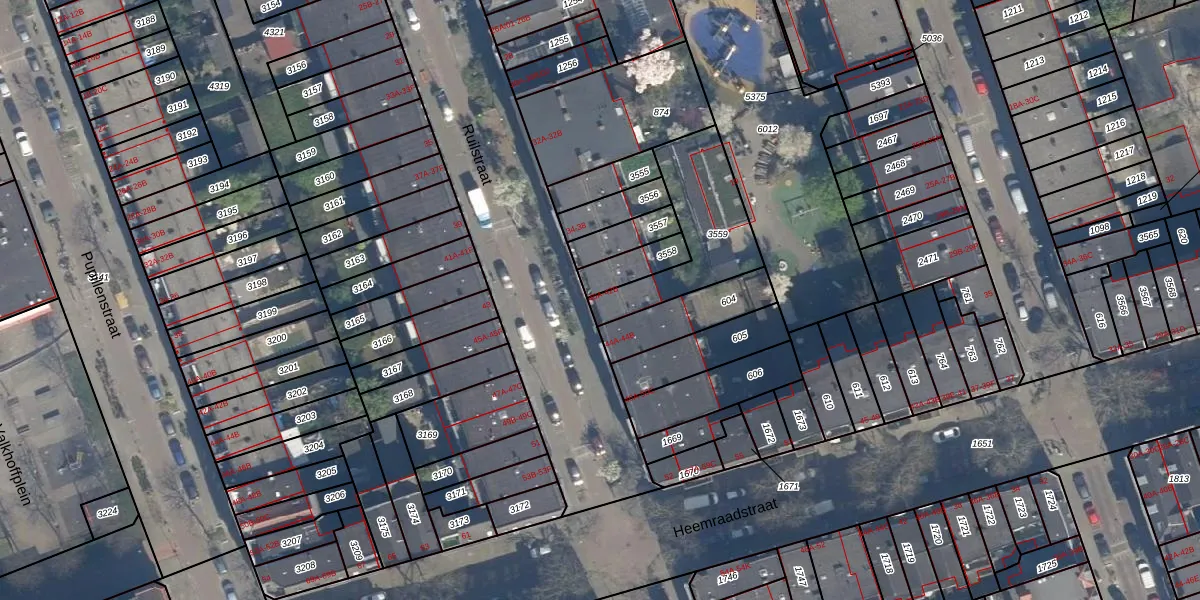 Ruilstraat 40-B is gelegen op kadastraal perceel DHV00C3559. Deze kadastrale aanduiding is uniek en wordt gebruikt door het Kadaster om eigendomsrechten en andere zakelijke rechten vast te leggen. Het perceel maakt onderdeel uit van de kadastrale gemeente Delfshaven.