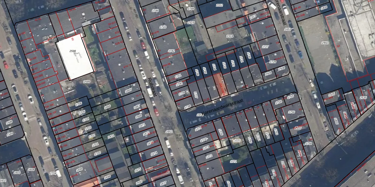 Het perceel waarop het adres ligt is DHV00-F-1739. De afkorting 'DHV00' staat voor kadastrale gemeente Delfshaven. Het perceel is 56 m² groot. Dat is kleiner dan de gemiddelde perceeloppervlakte in Delfshaven, dat op 628,89 m² ligt. De grootste perceeloppervlakte in de kadastrale gemeente is 22,2 ha. De kleinste oppervlakte bedraagt 0 m². Op het perceel zijn 5 adressen aanwezig. In de Basisregistratie Kadaster (BRK) werden de grenzen van het perceel geregistreerd op 19-03-2003.