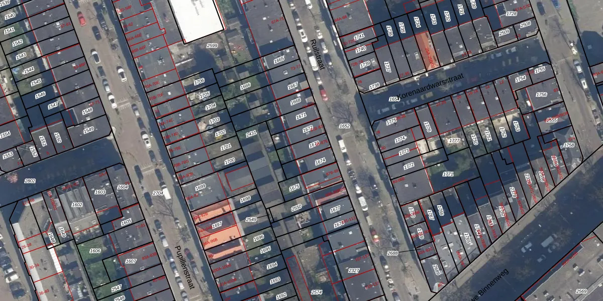 Het perceel waarop het adres ligt is DHV00-F-1673. De afkorting 'DHV00' staat voor kadastrale gemeente Delfshaven. Het perceel is 89 m² groot. Dat is kleiner dan de gemiddelde perceeloppervlakte in Delfshaven, dat op 628,89 m² ligt. De grootste perceeloppervlakte in de kadastrale gemeente is 22,2 ha. De kleinste oppervlakte bedraagt 0 m². Op het perceel zijn 4 adressen aanwezig. In de Basisregistratie Kadaster (BRK) werden de grenzen van het perceel geregistreerd op 19-03-2003.