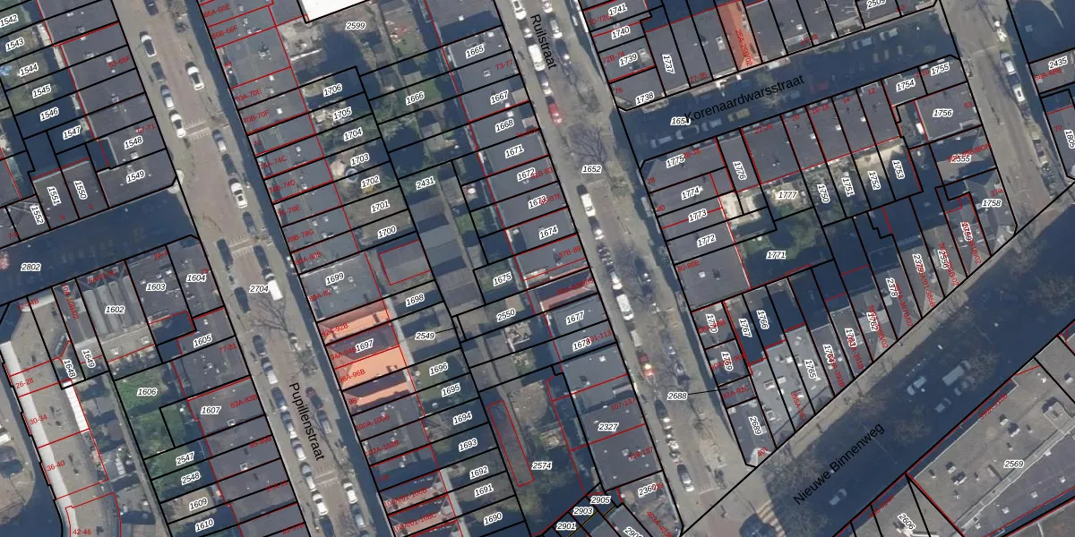 Het perceel waarop het adres ligt is DHV00-F-1675. De afkorting 'DHV00' staat voor kadastrale gemeente Delfshaven. Het perceel is 146 m² groot. Dat is kleiner dan de gemiddelde perceeloppervlakte in Delfshaven, dat op 628,89 m² ligt. De grootste perceeloppervlakte in de kadastrale gemeente is 22,2 ha. De kleinste oppervlakte bedraagt 0 m². Op het perceel zijn 4 adressen aanwezig. De huidige grenzen van het perceel zijn digitaal in de Basisregistratie Kadaster (BRK) geregistreerd op 19-03-2003.