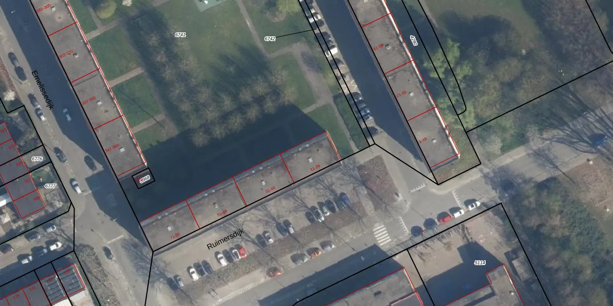 Ruimersdijk 19 is gelegen op kadastraal perceel ISM01B6741. Deze kadastrale aanduiding is uniek en wordt gebruikt door het Kadaster om eigendomsrechten en andere zakelijke rechten vast te leggen. Het perceel maakt onderdeel uit van de kadastrale gemeente IJsselmonde.