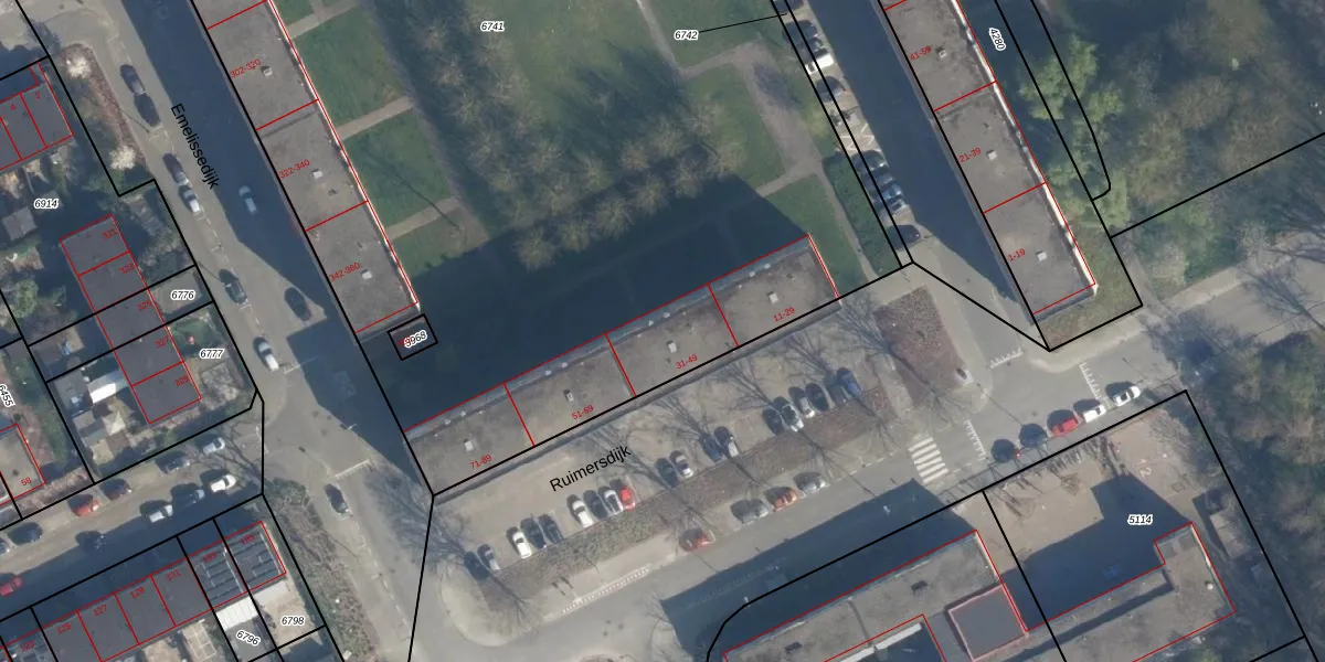 Ruimersdijk 45 is gelegen op kadastraal perceel ISM01B6741. Deze kadastrale aanduiding is uniek en wordt gebruikt door het Kadaster om eigendomsrechten en andere zakelijke rechten vast te leggen. Het perceel maakt onderdeel uit van de kadastrale gemeente IJsselmonde.