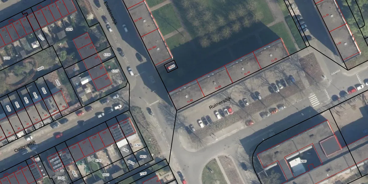 Ruimersdijk 75 is gelegen op kadastraal perceel ISM01B6741. Deze kadastrale aanduiding is uniek en wordt gebruikt door het Kadaster om eigendomsrechten en andere zakelijke rechten vast te leggen. Het perceel maakt onderdeel uit van de kadastrale gemeente IJsselmonde.
