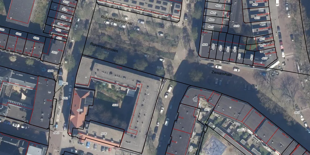 Ruivenplantsoen 2 is gelegen op kadastraal perceel RTD09Y5534. Deze kadastrale aanduiding is uniek en wordt gebruikt door het Kadaster om eigendomsrechten en andere zakelijke rechten vast te leggen. Het perceel maakt onderdeel uit van de kadastrale gemeente Rotterdam.