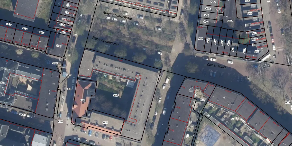 Ruivenplantsoen 92 is gelegen op kadastraal perceel RTD09Y5534. Deze kadastrale aanduiding is uniek en wordt gebruikt door het Kadaster om eigendomsrechten en andere zakelijke rechten vast te leggen. Het perceel maakt onderdeel uit van de kadastrale gemeente Rotterdam.