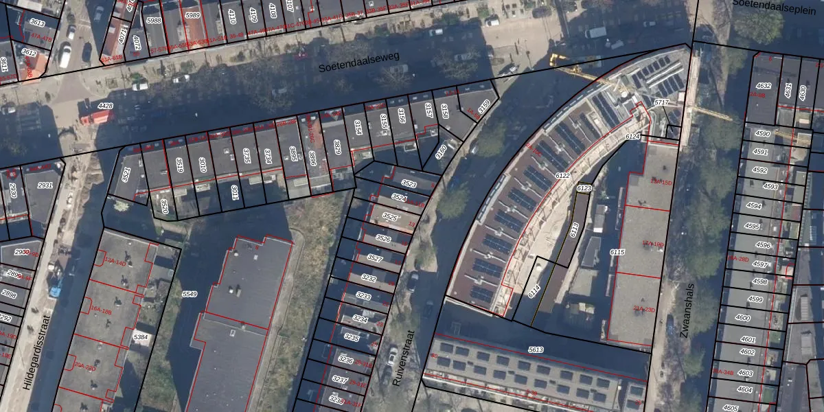 Het perceel waarop Ruivenstraat 11-B staat heeft een oppervlakte van 91 m². Dit is een klein perceel. De perceeloppervlakte wordt geregistreerd door het Kadaster. Gedetailleerde informatie over de maten van dit perceel kunt u vinden in het rapport Kadastrale kaart met maatvoering van Ruivenstraat 11-B.
