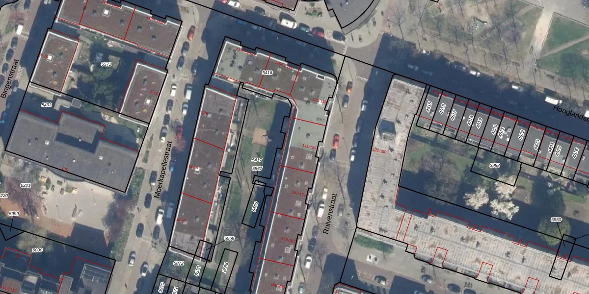 Ruivenstraat 153 is gelegen op kadastraal perceel RTD07W5416. Deze kadastrale aanduiding is uniek en wordt gebruikt door het Kadaster om eigendomsrechten en andere zakelijke rechten vast te leggen. Het perceel maakt onderdeel uit van de kadastrale gemeente Rotterdam.