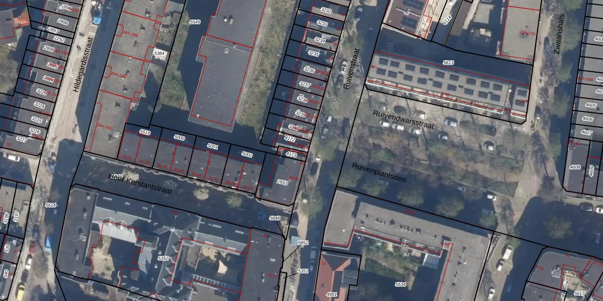 Het perceel waarop Ruivenstraat 37-B-01 staat heeft een oppervlakte van 83 m². Dit is een klein perceel. De perceeloppervlakte wordt geregistreerd door het Kadaster. Gedetailleerde informatie over de maten van dit perceel kunt u vinden in het rapport Kadastrale kaart met maatvoering van Ruivenstraat 37-B-01.