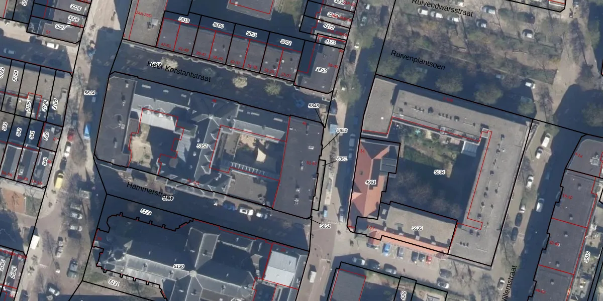 Het perceel waarop Ruivenstraat 77 staat heeft een oppervlakte van 2265 m². Dit is een zeer groot perceel. De perceeloppervlakte wordt geregistreerd door het Kadaster. Gedetailleerde informatie over de maten van dit perceel kunt u vinden in het rapport Kadastrale kaart met maatvoering van Ruivenstraat 77.