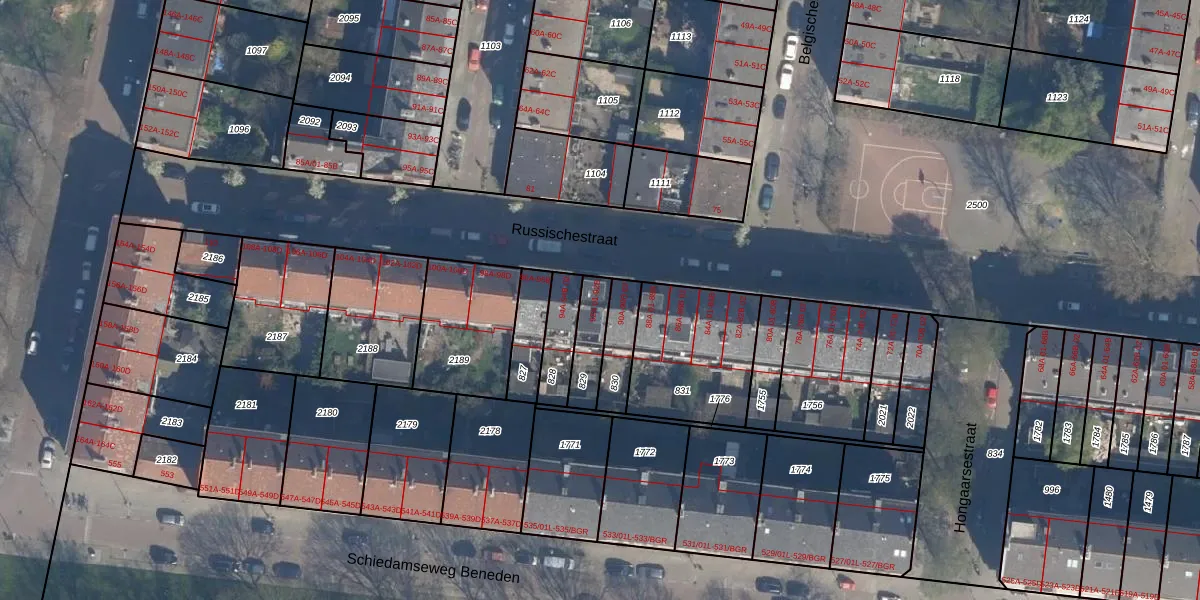 Russischestraat 92-A-02 is gelegen op kadastraal perceel RTD10AA829. Deze kadastrale aanduiding is uniek en wordt gebruikt door het Kadaster om eigendomsrechten en andere zakelijke rechten vast te leggen. Het perceel maakt onderdeel uit van de kadastrale gemeente Rotterdam.