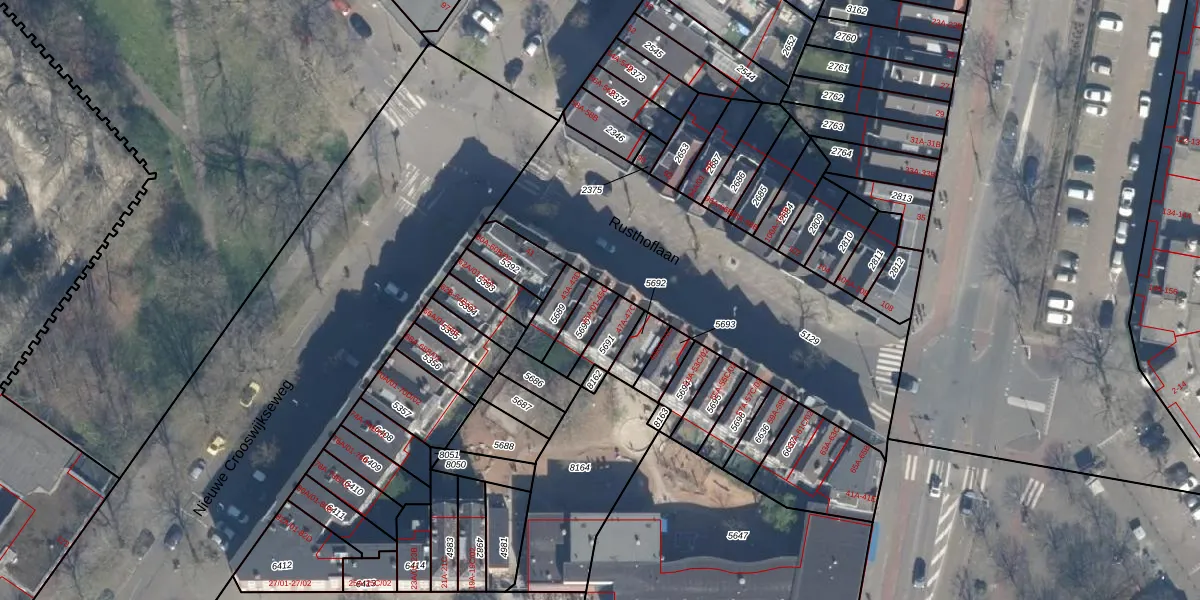 Het adres is gelegen op perceel 5690 in de sectie R en de kadastrale gemeente Rotterdam. De kadastrale aanduiding is aldus RTD07-R-5690. Het perceel is 81 m² groot. Dat is kleiner dan de gemiddelde perceeloppervlakte in Rotterdam, dat op 506,86 m² ligt. De grootste perceeloppervlakte in de kadastrale gemeente is 10,8 ha. De kleinste oppervlakte bedraagt 0 m². Er zijn 4 adressen aanwezig op het perceel. In de Basisregistratie Kadaster (BRK) werden de grenzen van het perceel geregistreerd op 24-01-2003.