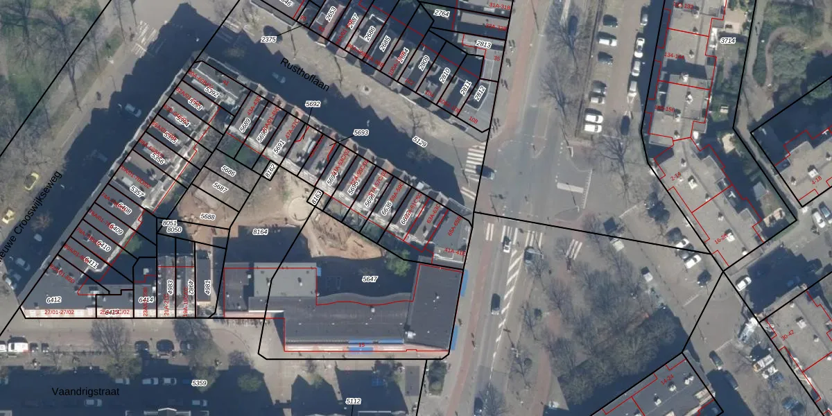 Het perceel waarop het adres ligt is RTD07-R-6637. De afkorting 'RTD07' staat voor kadastrale gemeente Rotterdam. Het perceel is kleiner dan gemiddeld in Rotterdam. Het perceel is 275 m² groot, terwijl het gemiddelde ligt op 506,86 m². Het grootste perceel in de kadastrale gemeente is 10,8 ha. Het kleinste perceel heeft een oppervlakte van 0 m². Op het perceel zijn 23 adressen aanwezig. De laatste wijziging in het de Basisregistratie Kadaster (BRK) was op 21-01-2010.