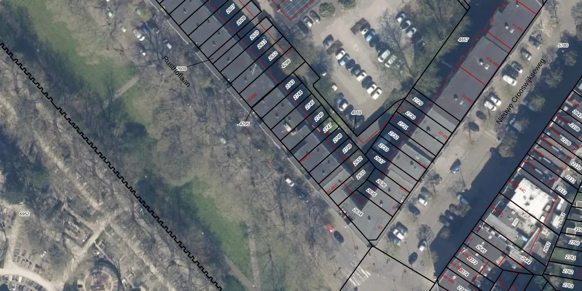 Het perceel waarop het adres ligt is KLG00-C-2746. De afkorting 'KLG00' staat voor kadastrale gemeente Kralingen. Het perceel is kleiner dan gemiddeld in Kralingen. Het perceel is 92 m² groot, terwijl het gemiddelde ligt op 1363,34 m². Het grootste perceel in de kadastrale gemeente is 1,32 km². Het kleinste perceel heeft een oppervlakte van 0 m². Er zijn 6 adressen aanwezig op het perceel. De laatste wijziging in het de Basisregistratie Kadaster (BRK) was op 02-12-2002.