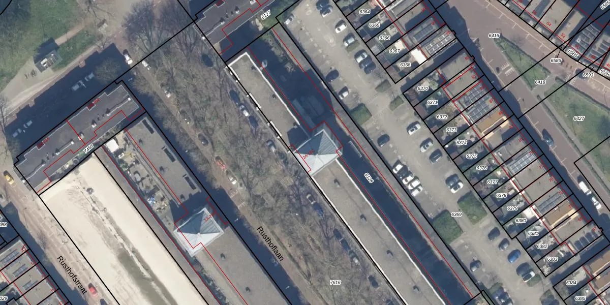 Het perceel waarop Rusthoflaan 8-C staat heeft een oppervlakte van 2534 m². Dit is een zeer groot perceel. De perceeloppervlakte wordt geregistreerd door het Kadaster. Gedetailleerde informatie over de maten van dit perceel kunt u vinden in het rapport Kadastrale kaart met maatvoering van Rusthoflaan 8-C.