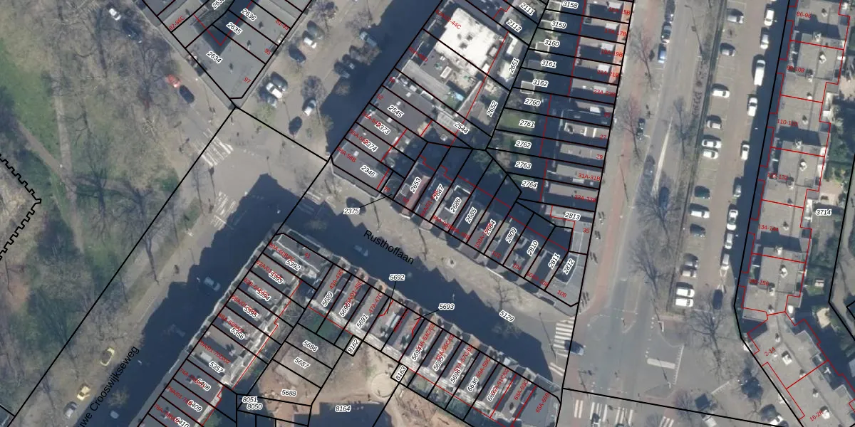 Rusthoflaan 94-A-01 is gelegen op kadastraal perceel KLG00C2687. Deze kadastrale aanduiding is uniek en wordt gebruikt door het Kadaster om eigendomsrechten en andere zakelijke rechten vast te leggen. Het perceel maakt onderdeel uit van de kadastrale gemeente Kralingen.