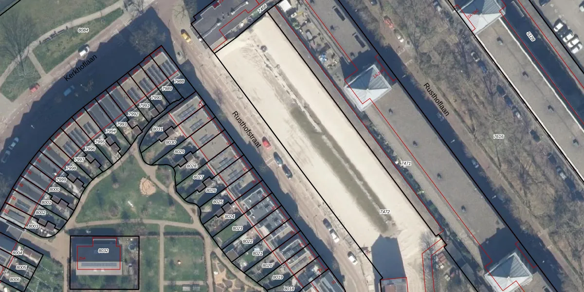 Het perceel waarop Rusthofstraat 24 staat heeft een oppervlakte van 4755 m². Dit is een zeer groot perceel. De perceeloppervlakte wordt geregistreerd door het Kadaster. Gedetailleerde informatie over de maten van dit perceel kunt u vinden in het rapport Kadastrale kaart met maatvoering van Rusthofstraat 24.