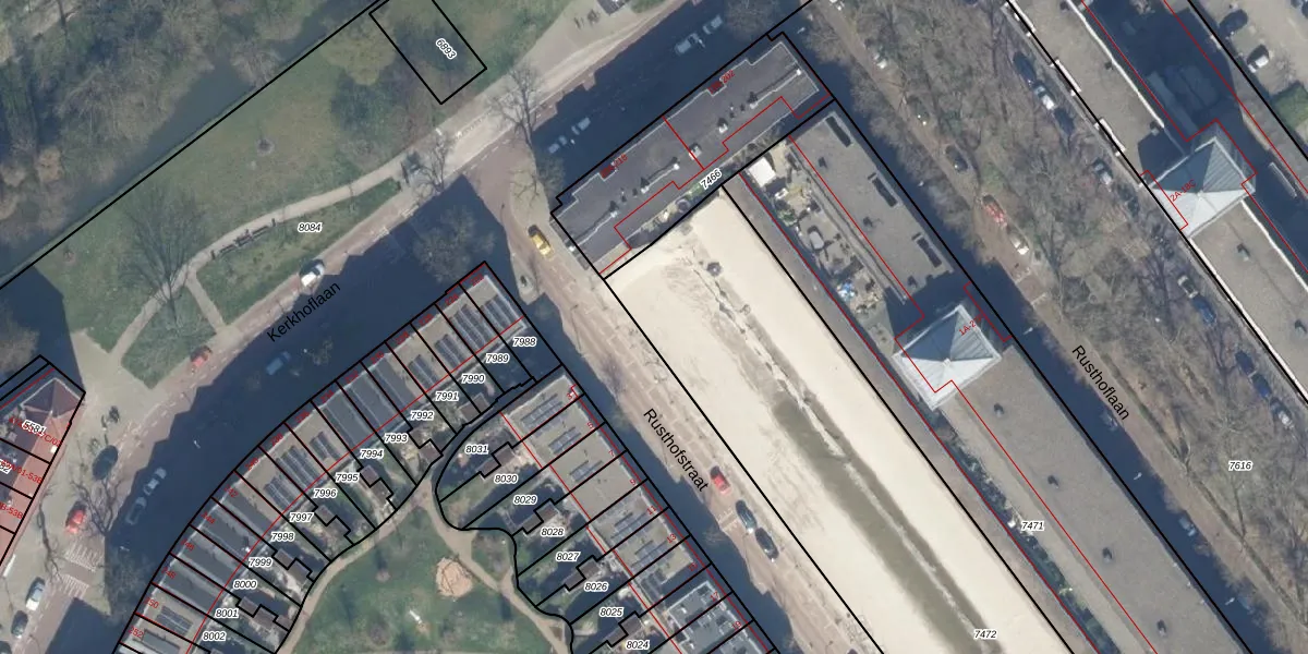 Het perceel waarop Rusthofstraat 8 staat heeft een oppervlakte van 4755 m². Dit is een zeer groot perceel. De perceeloppervlakte wordt geregistreerd door het Kadaster. Gedetailleerde informatie over de maten van dit perceel kunt u vinden in het rapport Kadastrale kaart met maatvoering van Rusthofstraat 8.