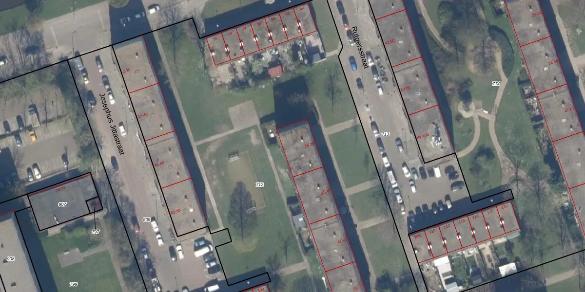 Het perceel waarop Rutgersstraat 21 staat heeft een oppervlakte van 8231 m². Dit is een zeer groot perceel. De perceeloppervlakte wordt geregistreerd door het Kadaster. Gedetailleerde informatie over de maten van dit perceel kunt u vinden in het rapport Kadastrale kaart met maatvoering van Rutgersstraat 21.
