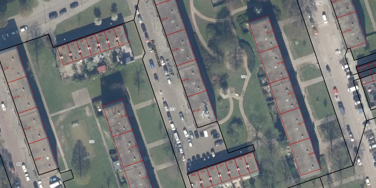 Rutgersstraat 80 is gelegen op kadastraal perceel SBK01D714. Deze kadastrale aanduiding is uniek en wordt gebruikt door het Kadaster om eigendomsrechten en andere zakelijke rechten vast te leggen. Het perceel maakt onderdeel uit van de kadastrale gemeente Schiebroek.