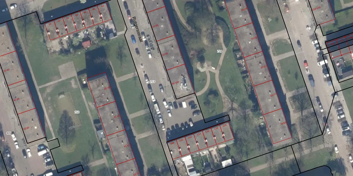 Het perceel waarop Rutgersstraat 88 staat heeft een oppervlakte van 9227 m². Dit is een zeer groot perceel. De perceeloppervlakte wordt geregistreerd door het Kadaster. Gedetailleerde informatie over de maten van dit perceel kunt u vinden in het rapport Kadastrale kaart met maatvoering van Rutgersstraat 88.