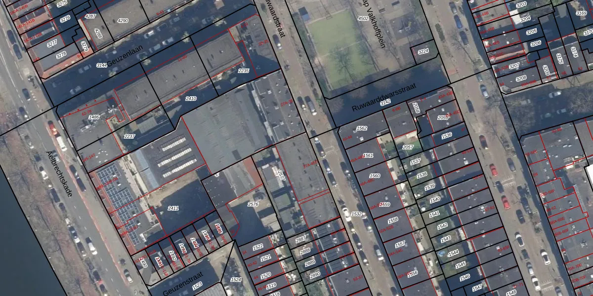 Het perceel waarop Ruwaardstraat 37-B staat heeft een oppervlakte van 626 m². Dit is een groot perceel. De perceeloppervlakte wordt geregistreerd door het Kadaster. Gedetailleerde informatie over de maten van dit perceel kunt u vinden in het rapport Kadastrale kaart met maatvoering van Ruwaardstraat 37-B.