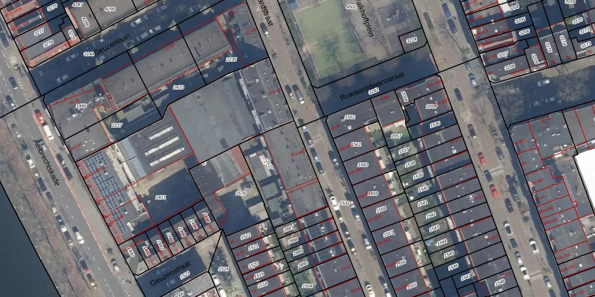Het perceel waarop Ruwaardstraat 39-A staat heeft een oppervlakte van 626 m². Dit is een groot perceel. De perceeloppervlakte wordt geregistreerd door het Kadaster. Gedetailleerde informatie over de maten van dit perceel kunt u vinden in het rapport Kadastrale kaart met maatvoering van Ruwaardstraat 39-A.