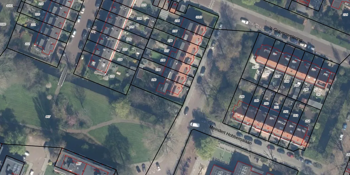 Gebruik de zoekbalk of klik op een perceel voor informatie over de adressen binnen dit perceel.