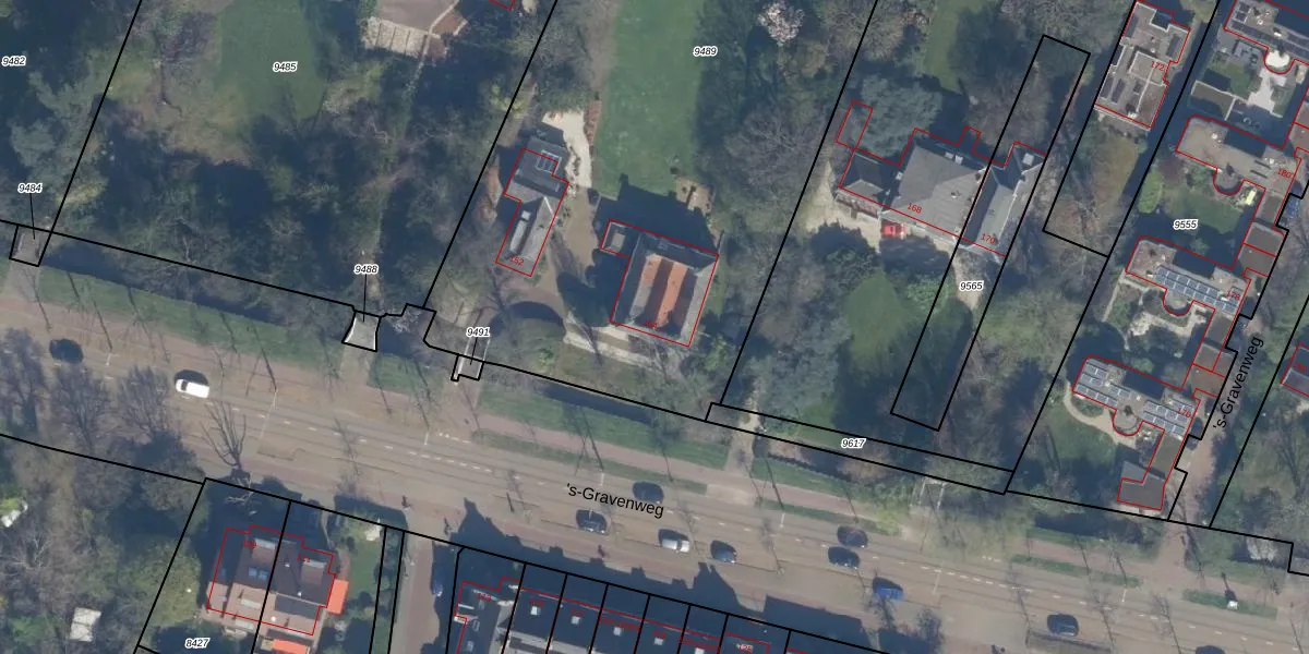 Het perceel waarop 's-Gravenweg 154 staat heeft een oppervlakte van 4494 m². Dit is een zeer groot perceel. De perceeloppervlakte wordt geregistreerd door het Kadaster. Gedetailleerde informatie over de maten van dit perceel kunt u vinden in het rapport Kadastrale kaart met maatvoering van 's-Gravenweg 154.