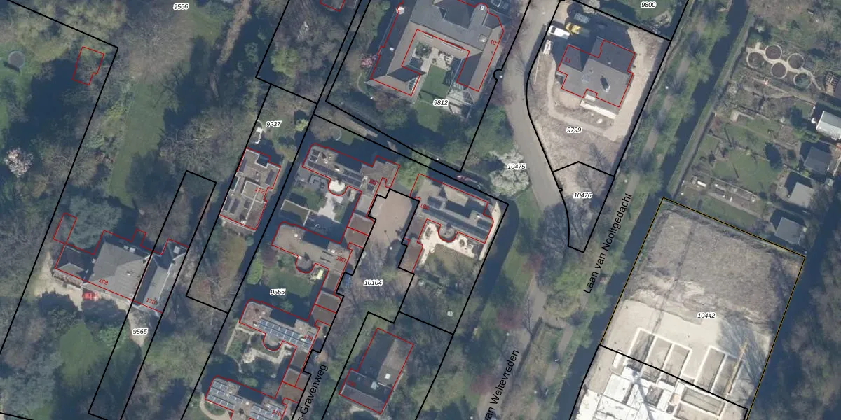 Het perceel waarop 's-Gravenweg 184 staat heeft een oppervlakte van 2760 m². Dit is een zeer groot perceel. De perceeloppervlakte wordt geregistreerd door het Kadaster. Gedetailleerde informatie over de maten van dit perceel kunt u vinden in het rapport Kadastrale kaart met maatvoering van 's-Gravenweg 184.