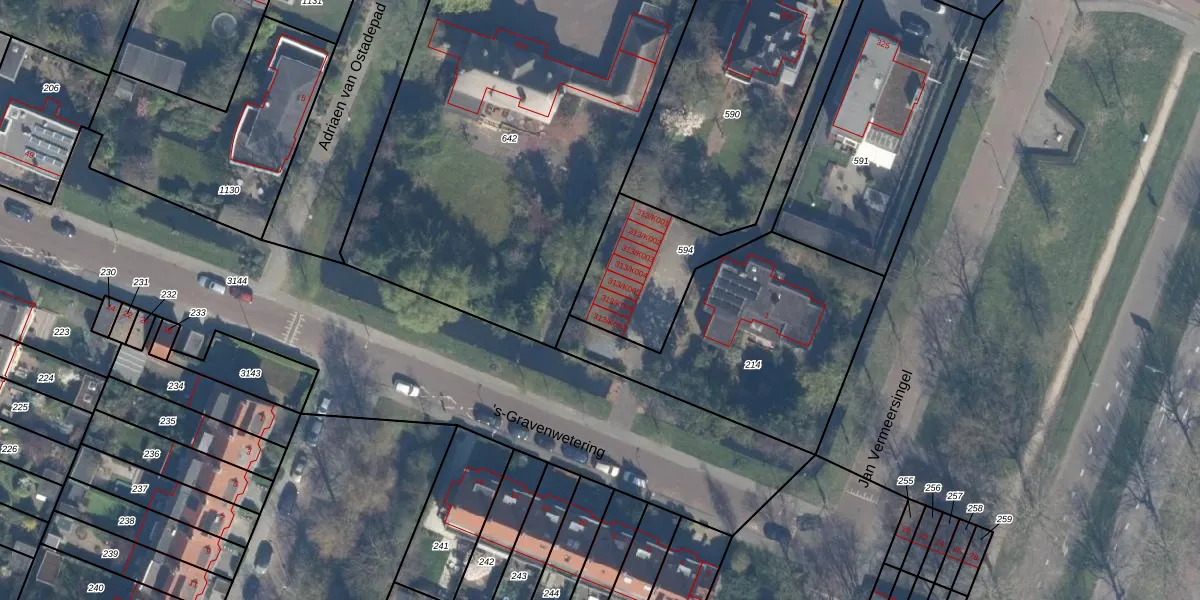 Het perceel waarop het adres ligt is KLG00-L-594. De afkorting 'KLG00' staat voor kadastrale gemeente Kralingen. De gemiddelde perceelgrootte in Kralingen is 1363,89 m². Dit perceel is kleiner: de perceeloppervlakte bedraagt 553 m². Het grootste perceel in de kadastrale gemeente is 1,32 km². Het kleinste perceel heeft een oppervlakte van 0 m². Op het perceel zijn 7 adressen aanwezig. De laatste wijziging in het de Basisregistratie Kadaster (BRK) was op 28-05-2002.