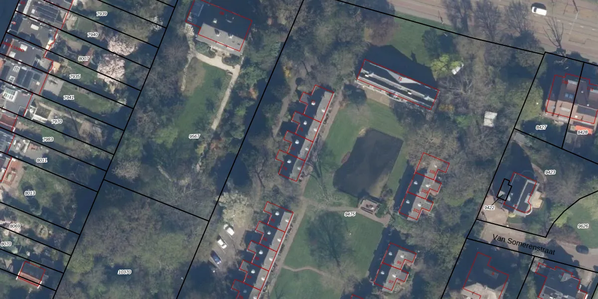 Het perceel waarop het adres ligt is KLG00-D-9475. De afkorting 'KLG00' staat voor kadastrale gemeente Kralingen. Het perceel is met 9740 m² relatief groot. Het gemiddelde ligt in de kadastrale gemeente Kralingen op 1363,89 m². De grootste perceeloppervlakte in de kadastrale gemeente is 1,32 km². De kleinste oppervlakte bedraagt 0 m². Op het perceel zijn 18 adressen aanwezig. De laatste wijziging in het de Basisregistratie Kadaster (BRK) was op 16-07-2003.