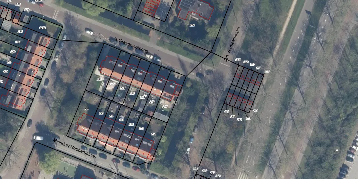 Het perceel waarop 's-Gravenwetering 2 staat heeft een oppervlakte van 256 m². Dit is een middelgroot perceel. De perceeloppervlakte wordt geregistreerd door het Kadaster. Gedetailleerde informatie over de maten van dit perceel kunt u vinden in het rapport Kadastrale kaart met maatvoering van 's-Gravenwetering 2.