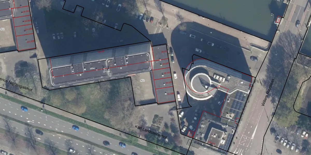 Het perceel waarop het adres ligt is KLG00-I-412. De afkorting 'KLG00' staat voor kadastrale gemeente Kralingen. De oppervlakte van het perceel is 2200 m². Dat is groter dan gemiddeld in Kralingen, waar de gemiddelde perceeloppervlakte op 1363,67 m² ligt. De grootste perceeloppervlakte in de kadastrale gemeente is 1,32 km². De kleinste oppervlakte bedraagt 0 m². Er zijn 107 adressen aanwezig op het perceel. De huidige grenzen van het perceel zijn digitaal in de Basisregistratie Kadaster (BRK) geregistreerd op 03-07-2002.