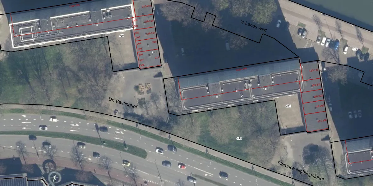 's-Lands werf 189-B is gelegen op kadastraal perceel KLG00I411. Deze kadastrale aanduiding is uniek en wordt gebruikt door het Kadaster om eigendomsrechten en andere zakelijke rechten vast te leggen. Het perceel maakt onderdeel uit van de kadastrale gemeente Kralingen.