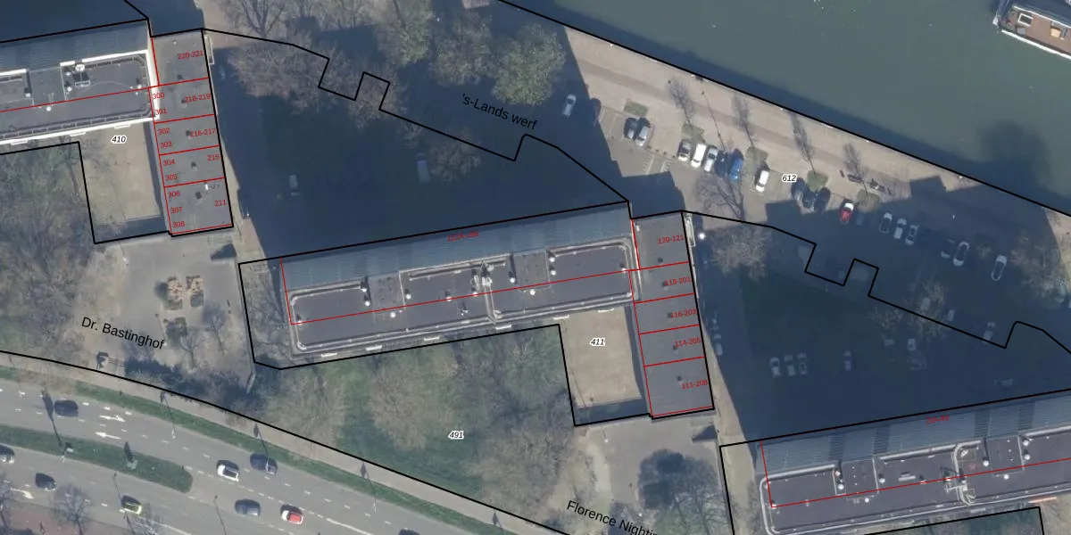 's-Lands werf 195-B is gelegen op kadastraal perceel KLG00I411. Deze kadastrale aanduiding is uniek en wordt gebruikt door het Kadaster om eigendomsrechten en andere zakelijke rechten vast te leggen. Het perceel maakt onderdeel uit van de kadastrale gemeente Kralingen.