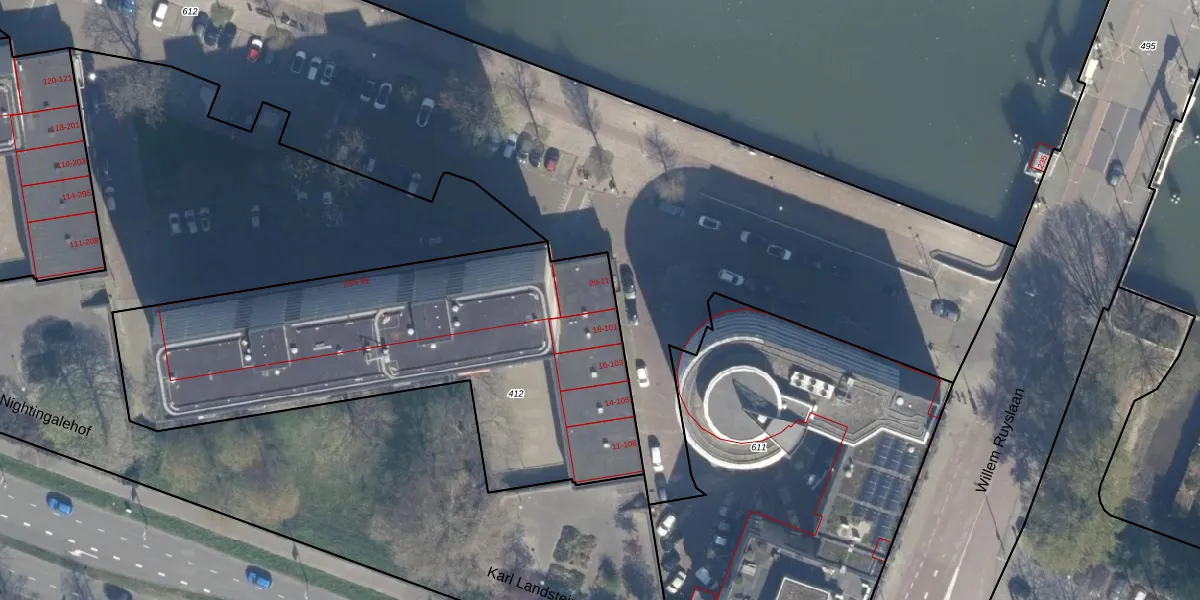 Het perceel waarop het adres ligt is KLG00-I-412. De afkorting 'KLG00' staat voor kadastrale gemeente Kralingen. De oppervlakte van het perceel is 2200 m². Dat is groter dan gemiddeld in Kralingen, waar de gemiddelde perceeloppervlakte op 1363,89 m² ligt. Het kleinste perceel in de kadastrale gemeente is 0 m² groot. De grootste perceeloppervlakte is 1,32 km². Er zijn 107 adressen aanwezig op het perceel. In de Basisregistratie Kadaster (BRK) werden de grenzen van het perceel geregistreerd op 03-07-2002.
