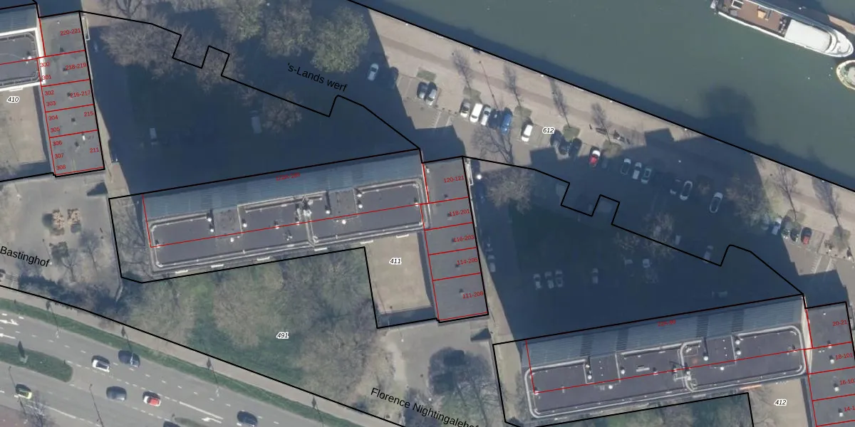 's-Lands werf 200 is gelegen op kadastraal perceel KLG00I411. Deze kadastrale aanduiding is uniek en wordt gebruikt door het Kadaster om eigendomsrechten en andere zakelijke rechten vast te leggen. Het perceel maakt onderdeel uit van de kadastrale gemeente Kralingen.