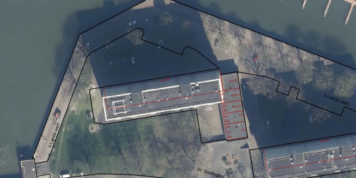 Het perceel waarop 's-Lands werf 294-A staat heeft een oppervlakte van 2200 m². Dit is een zeer groot perceel. De perceeloppervlakte wordt geregistreerd door het Kadaster. Gedetailleerde informatie over de maten van dit perceel kunt u vinden in het rapport Kadastrale kaart met maatvoering van 's-Lands werf 294-A.