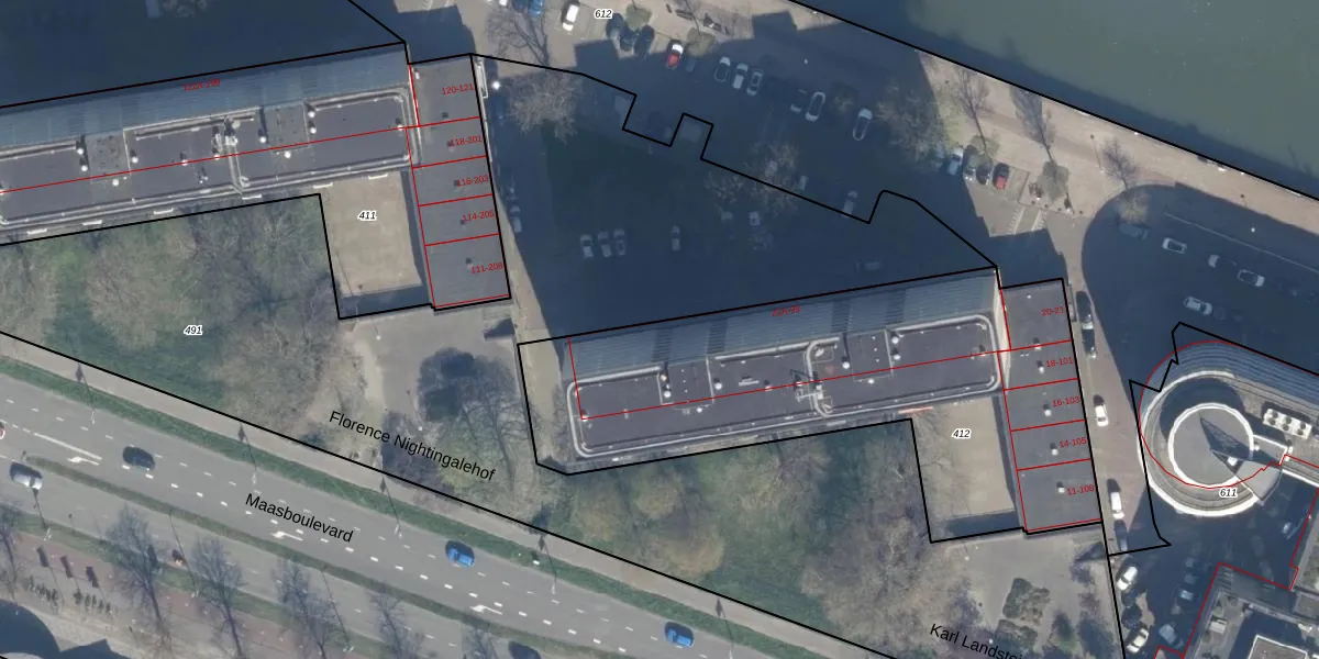 Het perceel waarop het adres ligt is KLG00-I-412. De afkorting 'KLG00' staat voor kadastrale gemeente Kralingen. De oppervlakte van het perceel is 2200 m². Dat is groter dan gemiddeld in Kralingen, waar de gemiddelde perceeloppervlakte op 1363,89 m² ligt. De grootste perceeloppervlakte in de kadastrale gemeente is 1,32 km². De kleinste oppervlakte bedraagt 0 m². Er zijn 107 adressen aanwezig op het perceel. De laatste wijziging in het de Basisregistratie Kadaster (BRK) was op 03-07-2002.