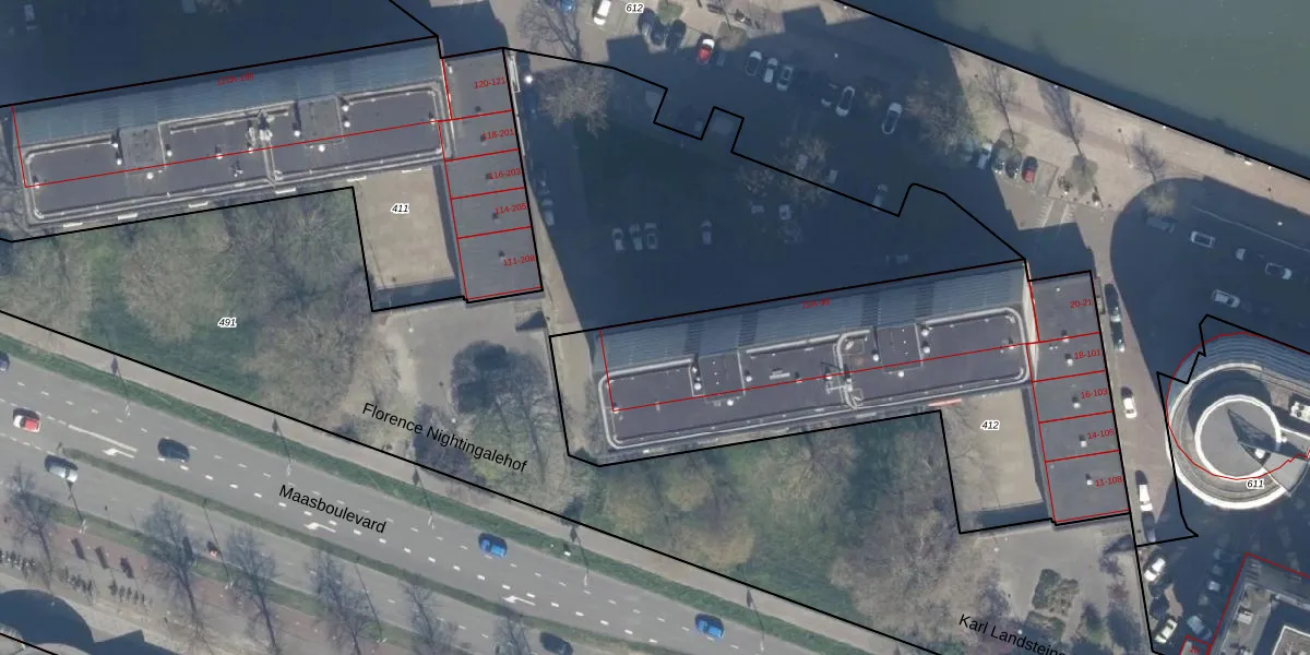 Het perceel waarop het adres ligt is KLG00-I-412. De afkorting 'KLG00' staat voor kadastrale gemeente Kralingen. De oppervlakte van het perceel is 2200 m². Dat is groter dan gemiddeld in Kralingen, waar de gemiddelde perceeloppervlakte op 1363,67 m² ligt. De grootste perceeloppervlakte in de kadastrale gemeente is 1,32 km². De kleinste oppervlakte bedraagt 0 m². Op het perceel zijn 107 adressen aanwezig. De huidige grenzen van het perceel zijn digitaal in de Basisregistratie Kadaster (BRK) geregistreerd op 03-07-2002.