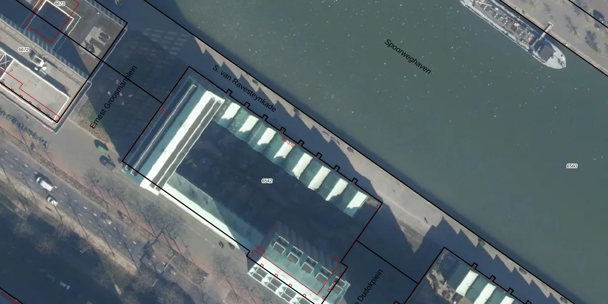 Het perceel waarop het adres ligt is RTD05-Q-6542. De afkorting 'RTD05' staat voor kadastrale gemeente Rotterdam. De gemiddelde perceeloppervlakte in de kadastrale gemeente Rotterdam is 1401,79 m². Dit perceel is met zijn 3070 m² dus groter dan gemiddeld. Het grootste perceel in de kadastrale gemeente is 36,8 ha. Het kleinste perceel heeft een oppervlakte van 0 m². Op het perceel liggen in totaal 107 adressen. De laatste wijziging in het de Basisregistratie Kadaster (BRK) was op 27-01-2011.