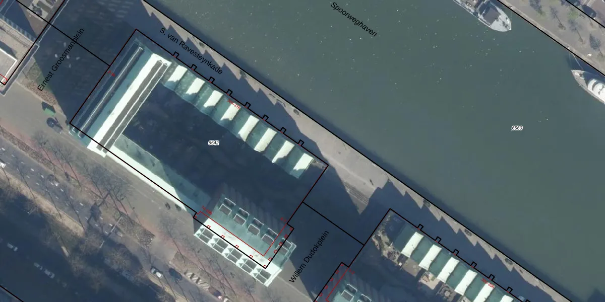 Het perceel waarop het adres ligt is RTD05-Q-6542. De afkorting 'RTD05' staat voor kadastrale gemeente Rotterdam. De gemiddelde perceeloppervlakte in de kadastrale gemeente Rotterdam is 1401,79 m². Dit perceel is met zijn 3070 m² dus groter dan gemiddeld. Het grootste perceel in de kadastrale gemeente is 36,8 ha. Het kleinste perceel heeft een oppervlakte van 0 m². Op het perceel liggen in totaal 107 adressen. De laatste wijziging in het de Basisregistratie Kadaster (BRK) was op 27-01-2011.