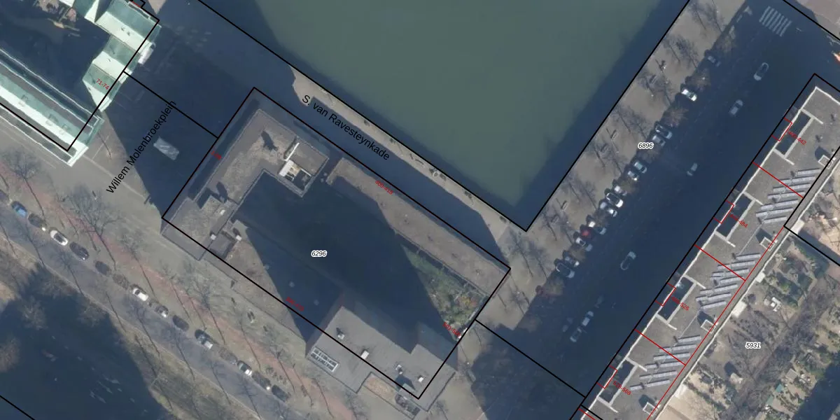 Het perceel waarop S. van Ravesteynkade 412 staat heeft een oppervlakte van 2840 m². Dit is een zeer groot perceel. De perceeloppervlakte wordt geregistreerd door het Kadaster. Gedetailleerde informatie over de maten van dit perceel kunt u vinden in het rapport Kadastrale kaart met maatvoering van S. van Ravesteynkade 412.