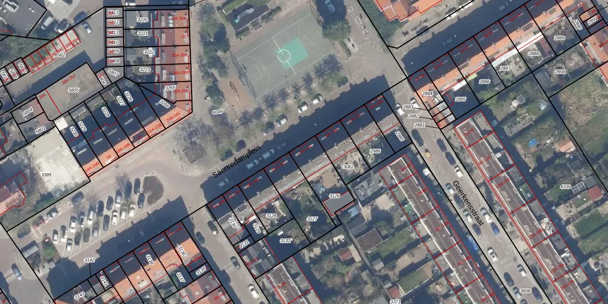 Saenredamplein 23-A is gelegen op kadastraal perceel OVS00C3126. Deze kadastrale aanduiding is uniek en wordt gebruikt door het Kadaster om eigendomsrechten en andere zakelijke rechten vast te leggen. Het perceel maakt onderdeel uit van de kadastrale gemeente Overschie.