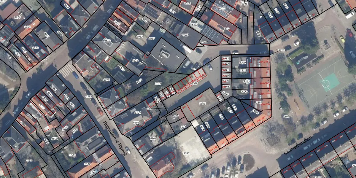 Het perceel waarop het adres ligt is OVS00-C-6582. De afkorting 'OVS00' staat voor kadastrale gemeente Overschie. Het perceel is kleiner dan gemiddeld in Overschie. Het perceel is 458 m² groot, terwijl het gemiddelde ligt op 2523,71 m². De grootste perceeloppervlakte in de kadastrale gemeente is 80,2 ha. De kleinste oppervlakte bedraagt 0 m². Er zijn 7 adressen aanwezig op het perceel. De huidige grenzen van het perceel zijn digitaal in de Basisregistratie Kadaster (BRK) geregistreerd op 13-02-2017.