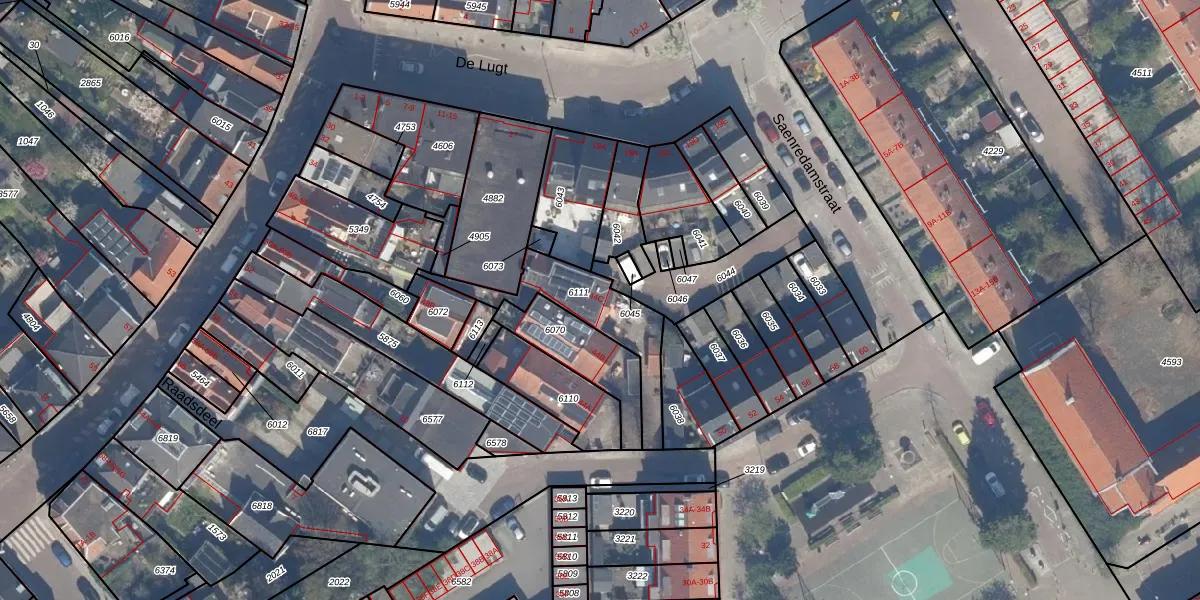 Gebruik de zoekbalk of klik op een perceel voor informatie over de adressen binnen dit perceel.