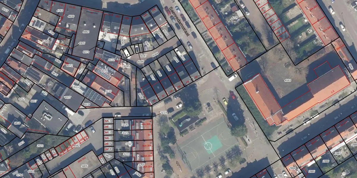 Saenredamplein 56 is gelegen op kadastraal perceel OVS00C6035. Deze kadastrale aanduiding is uniek en wordt gebruikt door het Kadaster om eigendomsrechten en andere zakelijke rechten vast te leggen. Het perceel maakt onderdeel uit van de kadastrale gemeente Overschie.