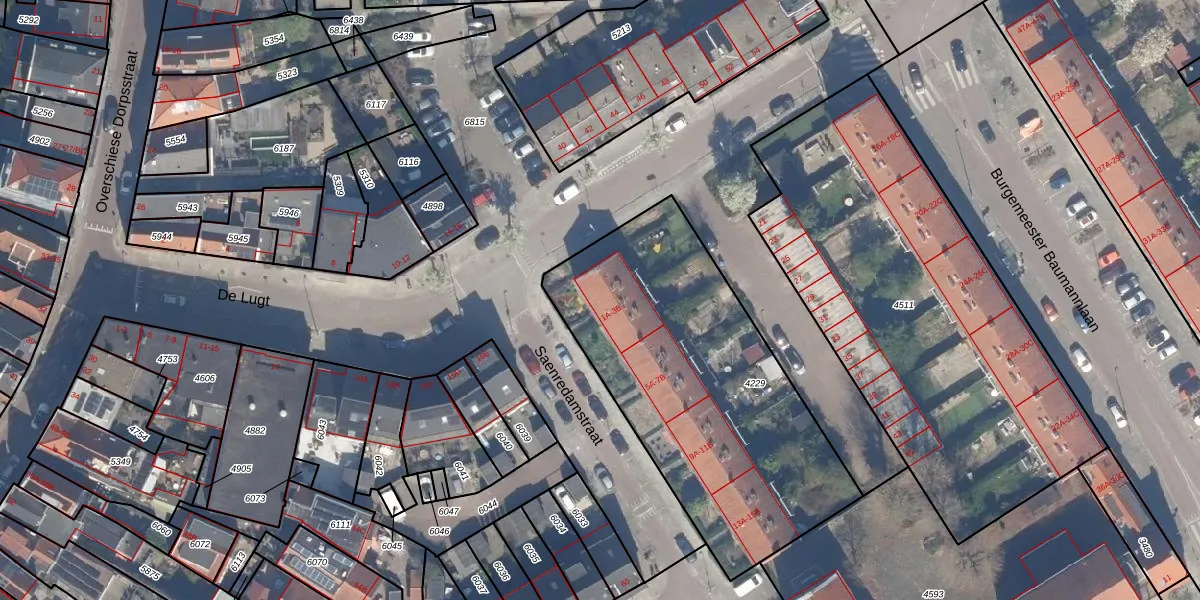 Saenredamstraat 1-B is gelegen op kadastraal perceel OVS00C4229. Deze kadastrale aanduiding is uniek en wordt gebruikt door het Kadaster om eigendomsrechten en andere zakelijke rechten vast te leggen. Het perceel maakt onderdeel uit van de kadastrale gemeente Overschie.